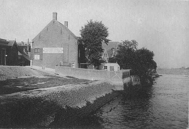 Woning A 678, later Rivierdijk 422 met open plek t.o.Boslaan. Van hier werden vroeger koeien naar de de overkant gebracht met een schuit. In het pand was de kruidenierswinkel van Drapers, later Schrumf.