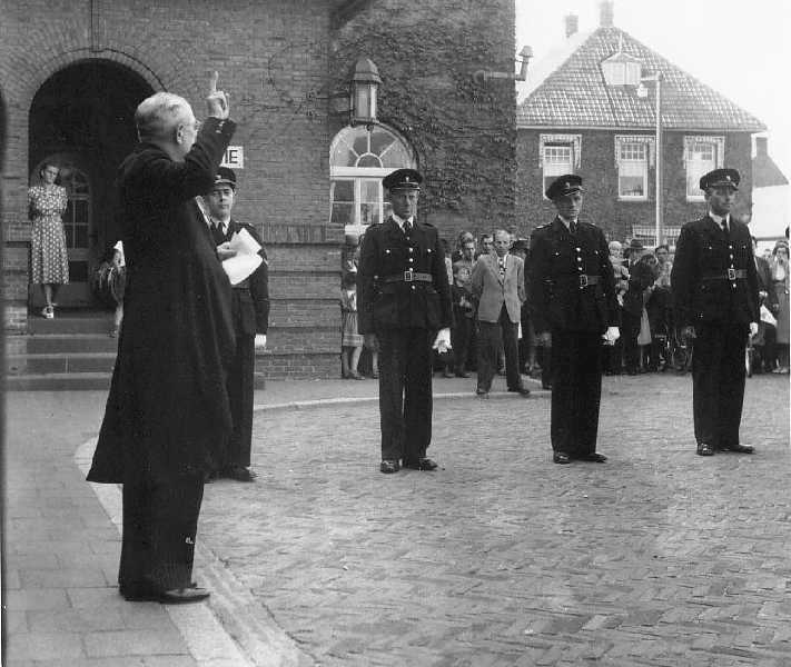 Agent Van der Linde bij eedaflegging reservepolitie.