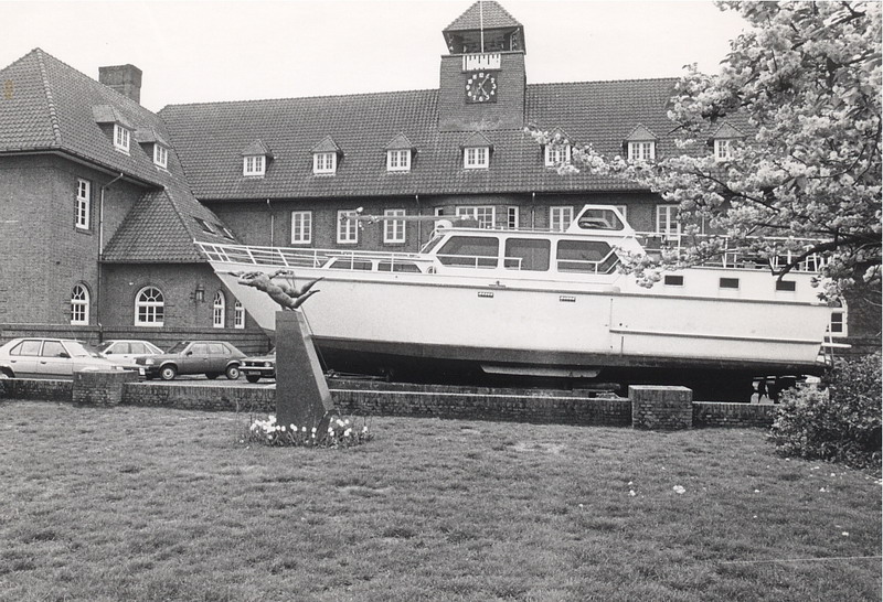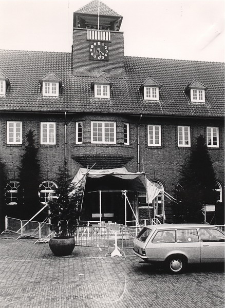 Opde stoep voor het gemeentehuis.