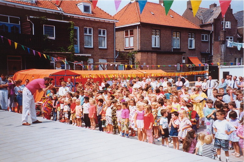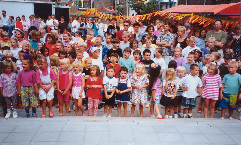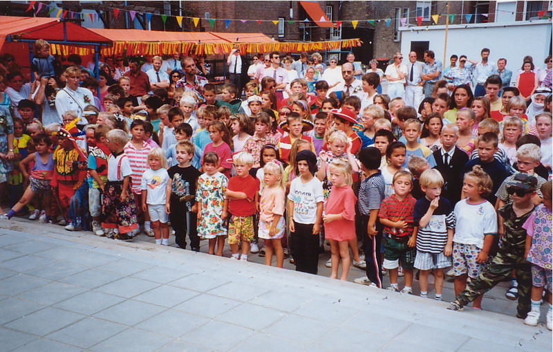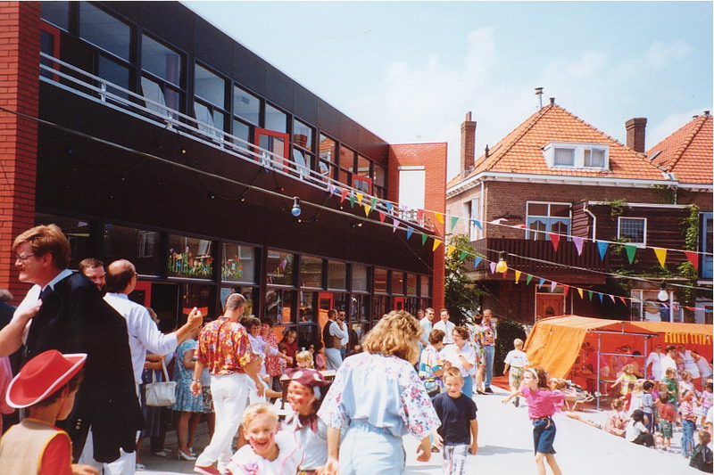 Opening van de Henri Dunantschool met leerlingen en genodigden.