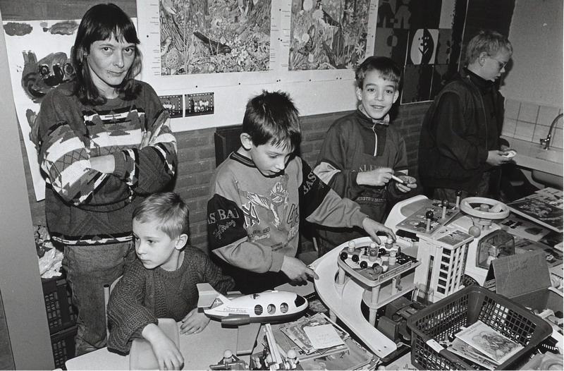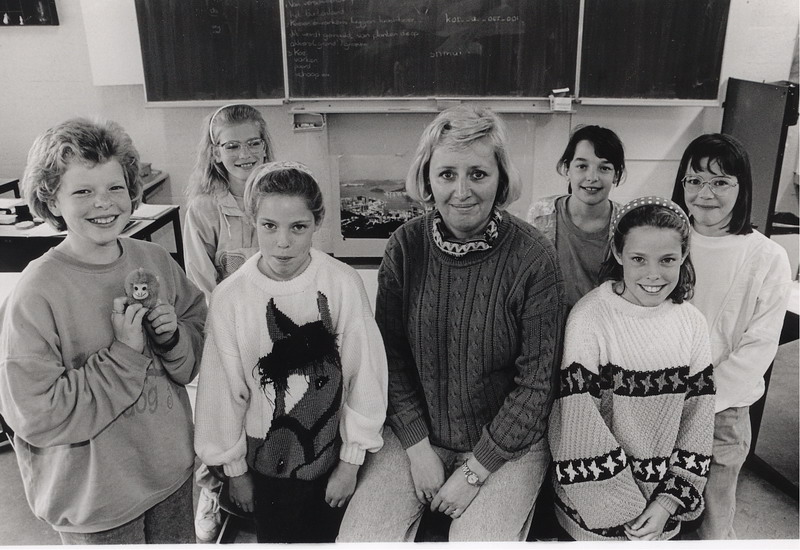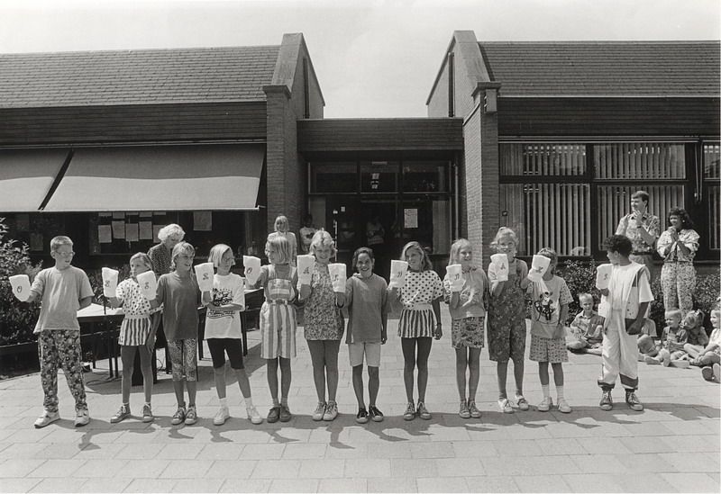 Directeur Cala Versteeg met enkele leelingen van de Roald Dahlschool