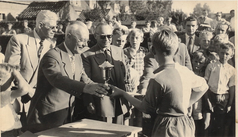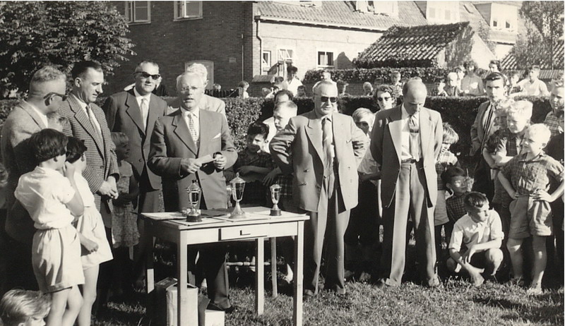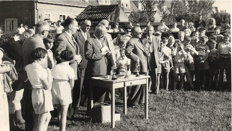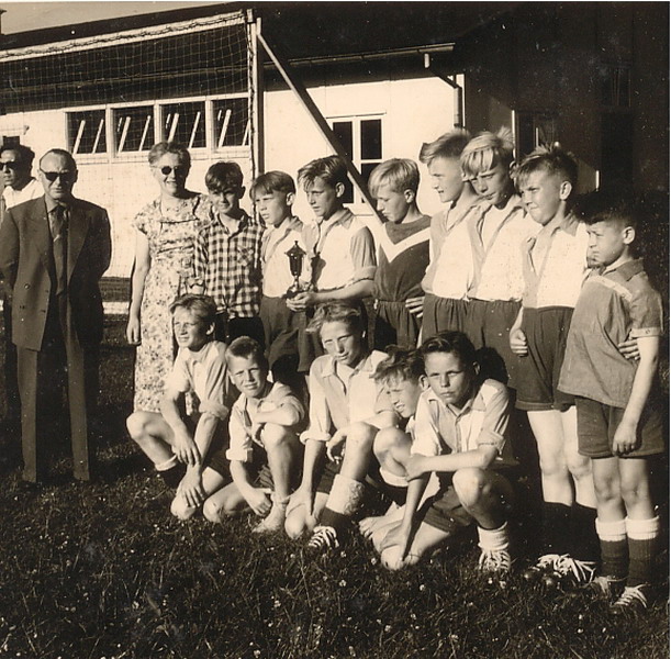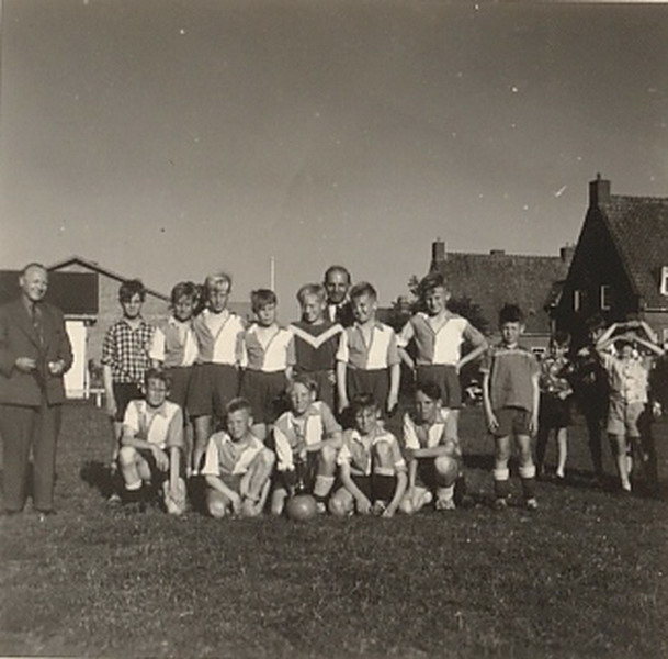 Finale School 3 - School 4 1956. Beslist na het nemen van 66 strafschoppen in het voordeel van school 4. Keeper van school 3 was Huibpie Kraaijeveld die nog veel van zijn teamgenoten herkent.