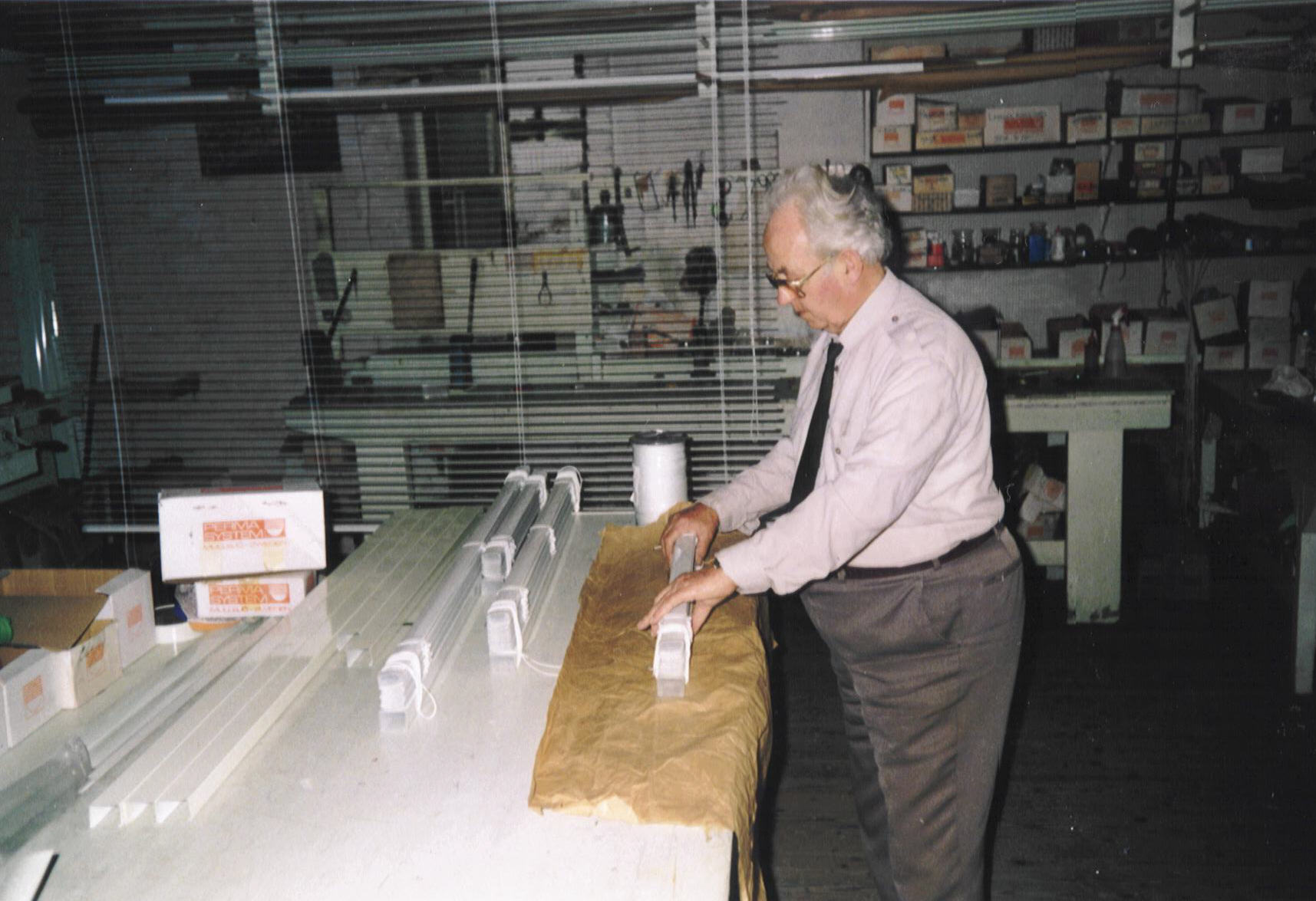 Jalouziemaker Bas van Genderen in zijn werkplaats nabij de Salonstoep