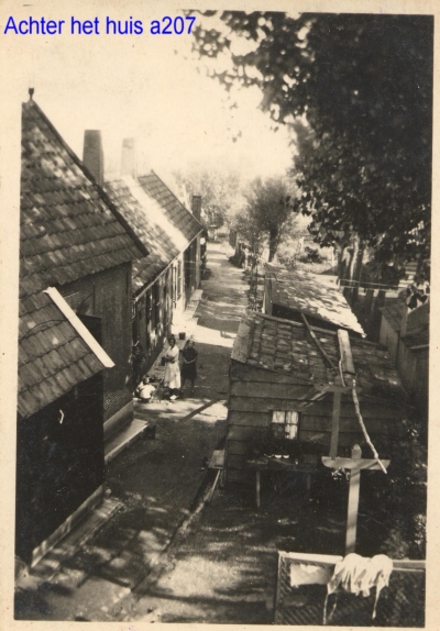 Stoep in wijk A naast de vroegere boerderij van Van der Laan. Tegenover Vink motoren.