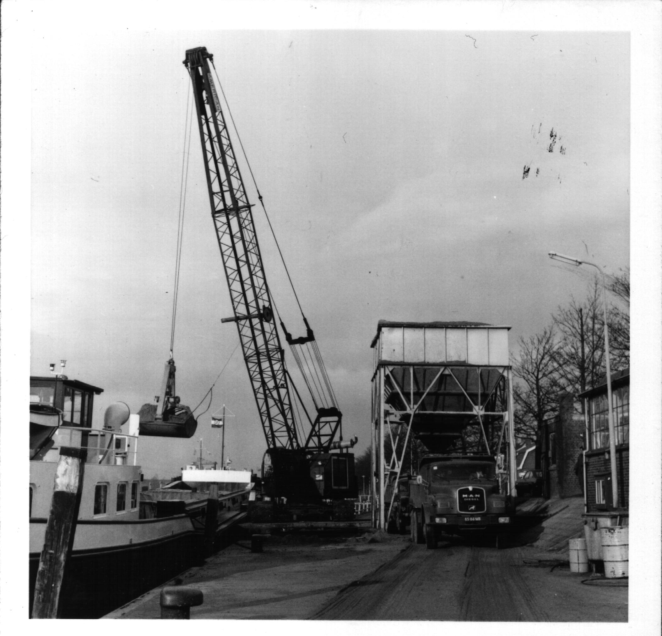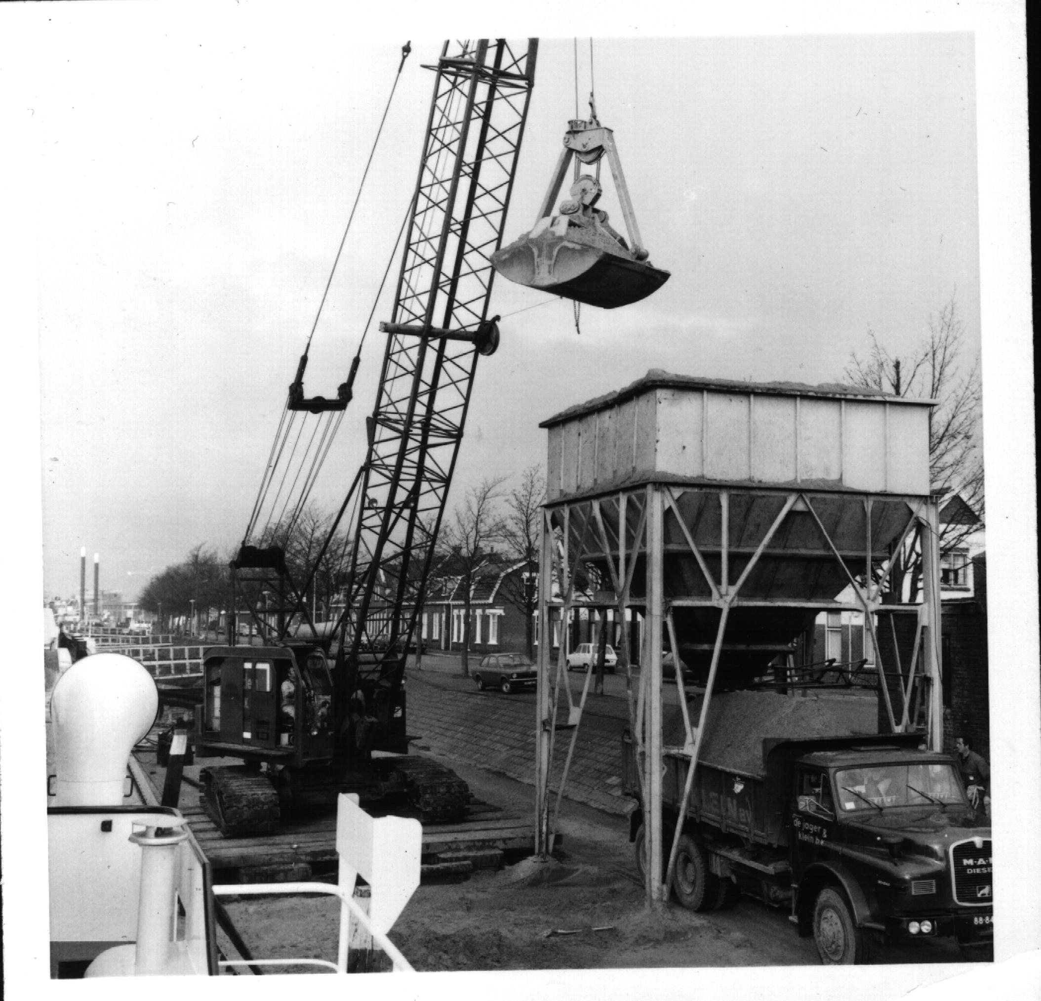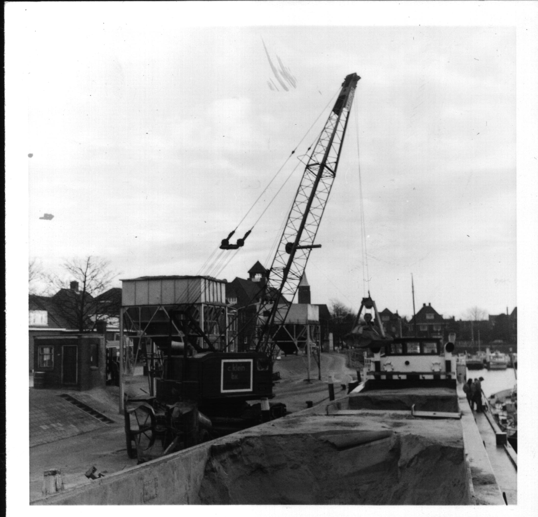 Lossen van een zandschip bij de Sliedrechtse haven