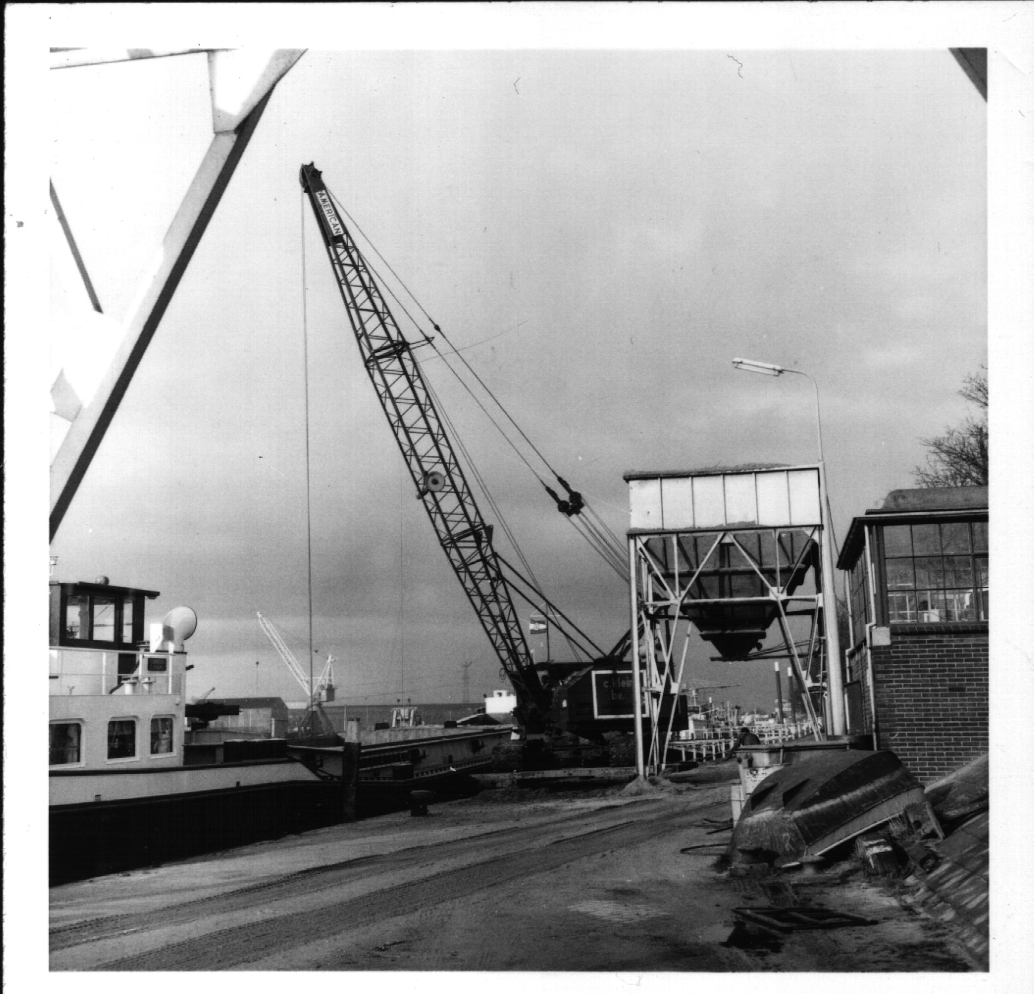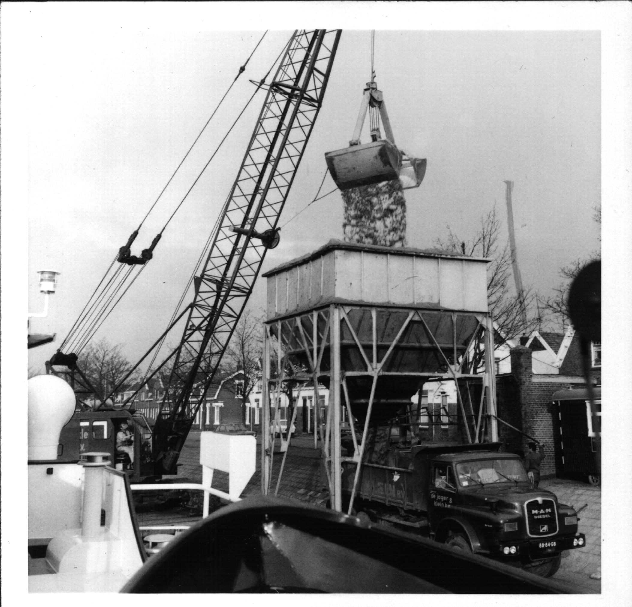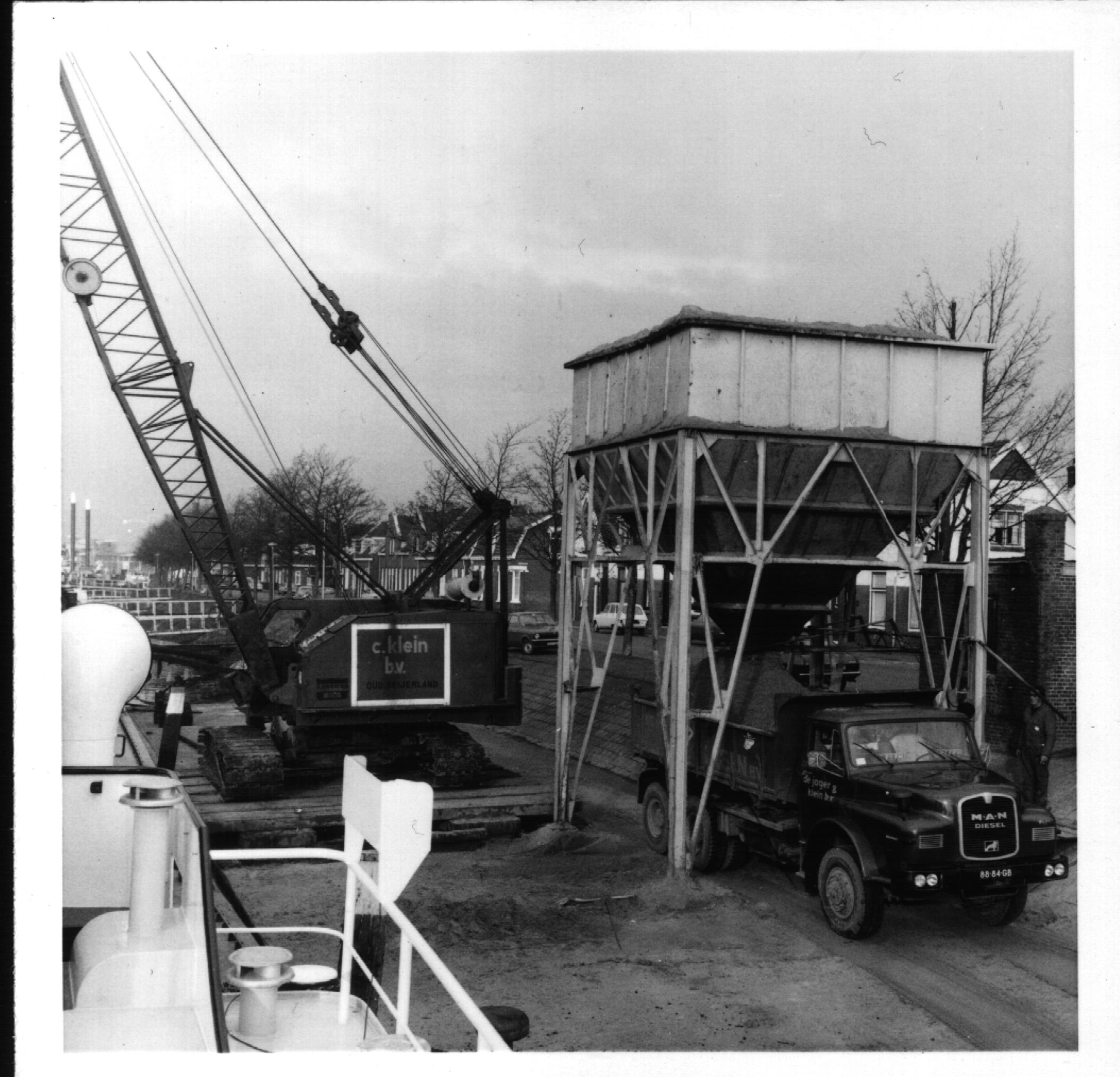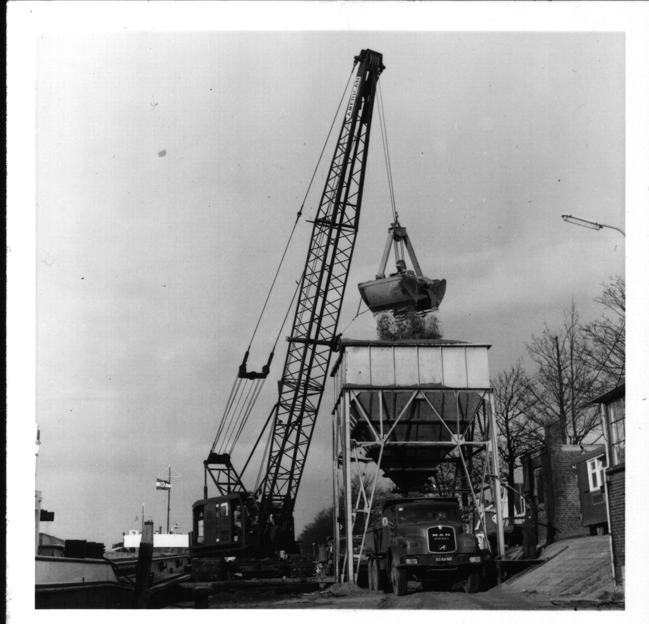 Lossen van een zandschip bij de Sliedrechtse haven