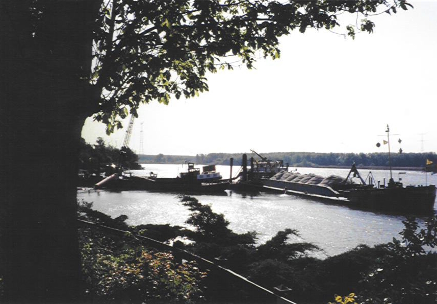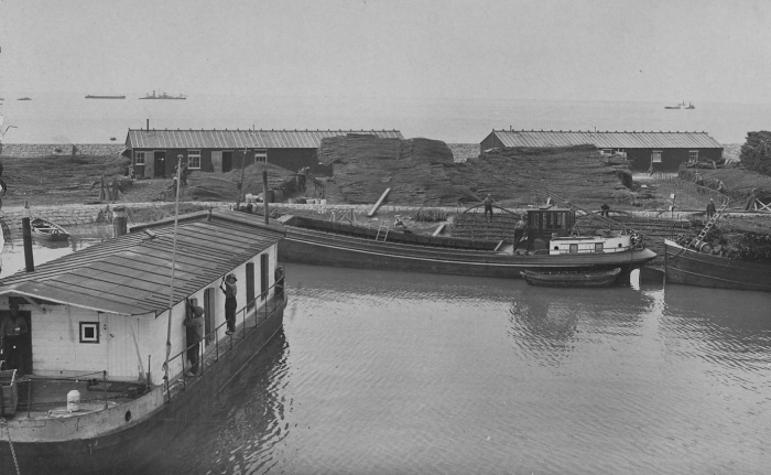 Schepen liggen klaar op de Merwede voor het dempen van het Middeldiep