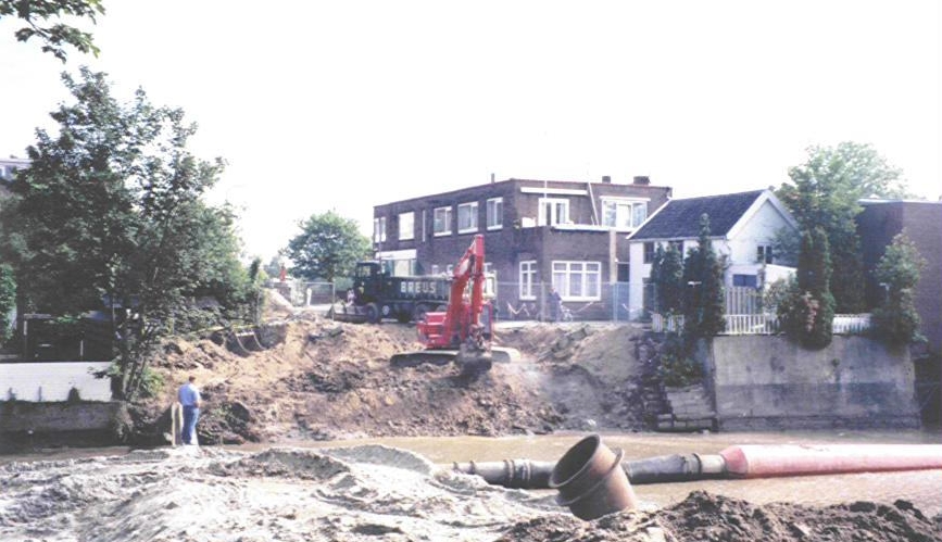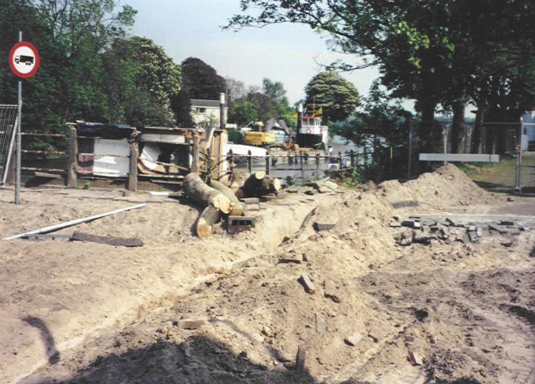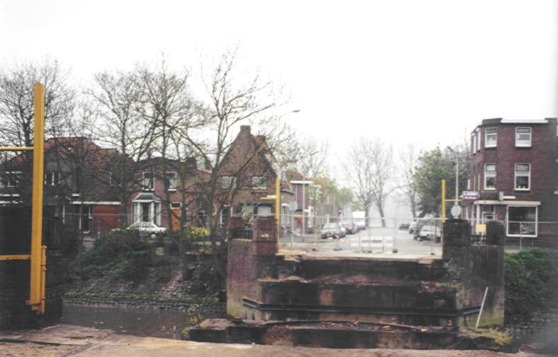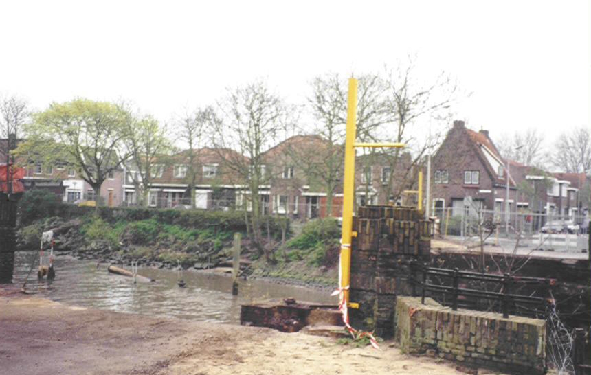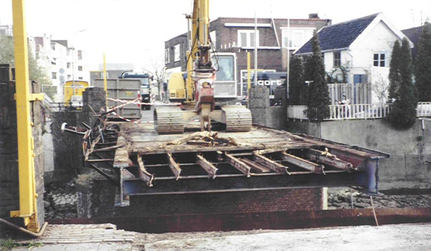 Opengebroken oosterbrugstraat tijdend het verwijderen van de Oosterbrug