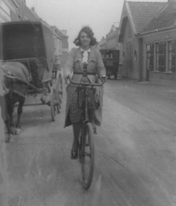 Fietser in de Kerkbuurt-oost nabij het kruispunt met de Oosterbrugstraat