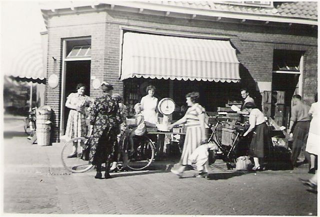 Drukte bij de groentezaak van Dirk Korevaar een de Klopstraat.