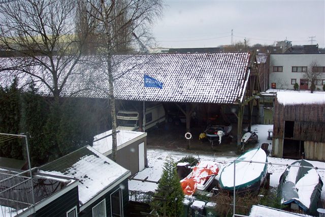 Voorste gedeelte van de oude hoepelschuur op het terrein van voormalige jachthaven De Jong. Gesloopt in 2003.