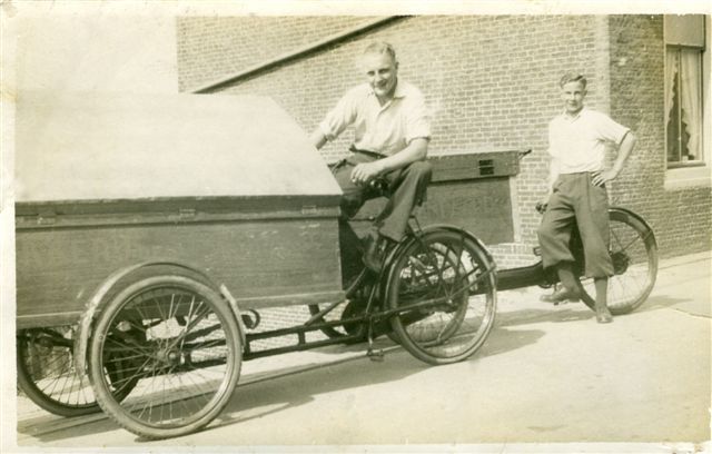 Bakker Hansum met de broodkar.