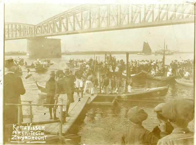 Feest bij de spoorbrug. Het betreft het feest: 100 jaar bevrijding van de Fransen, groots gevierd in 1913!!