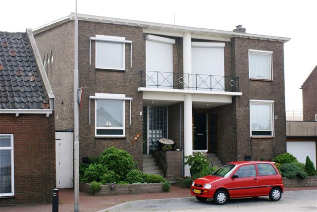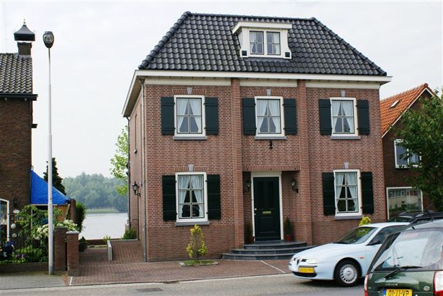 Nieuw woonhuis tegenover de synagoge. Hier in de buurt was vroeger de aanlegplaats van een veer.