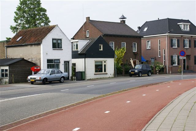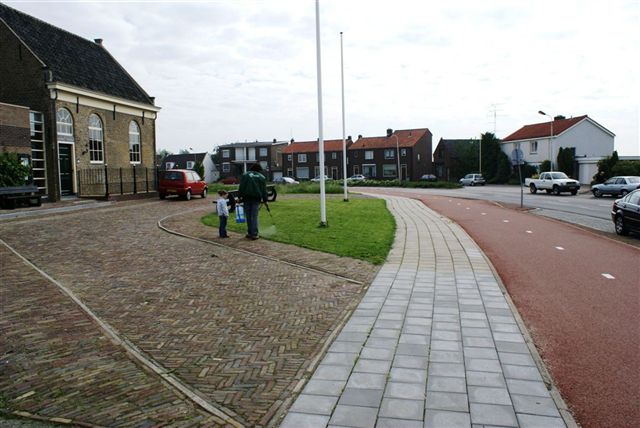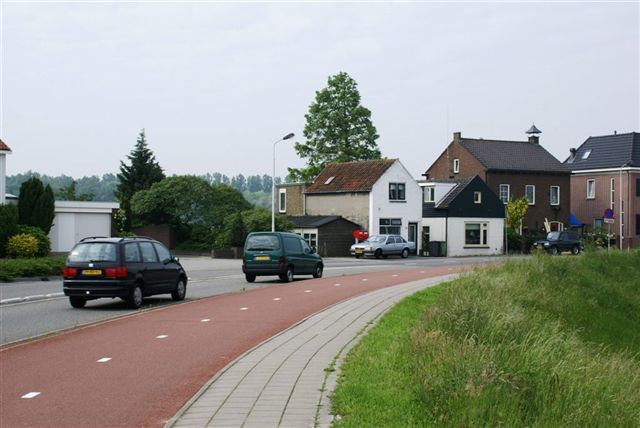 Woonhuizen omgeving tegenover de oude synagoge in de bocht van de dijk.