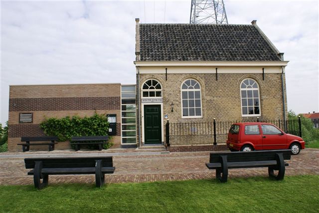 Synagoge met enkel dijkwoningen.