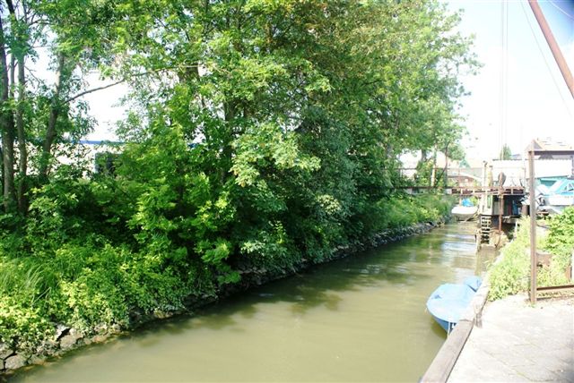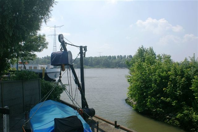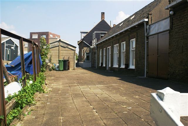 De gantel achter de stoep van Vermaas. Vroeger liep deze gantel door tot ongeveer de Bandwerf. De Zaai met watertoren vormde zodoende een eiland