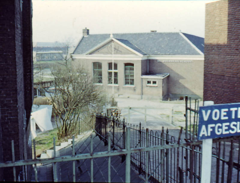 Gezien vanaf de dijk de Boerhaaveschool, daarvoor school 1. In de volksmond de Groeneveldeschool.