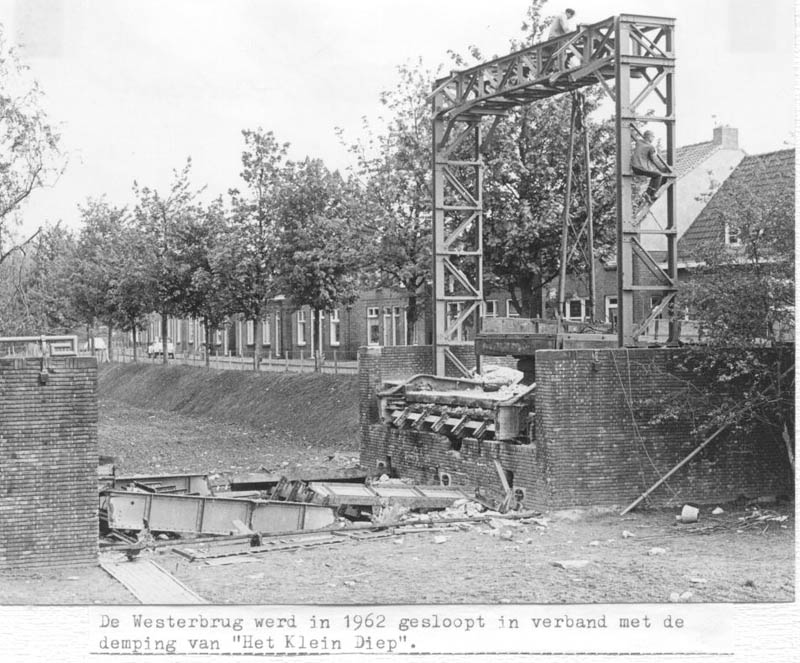 Sloop van de Westerbrug in 1962 i.v.m. dempen Kleindiep