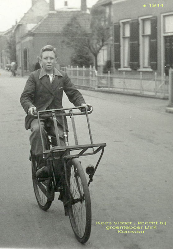Kees Visser, knecht bij groenteboer Korevaar op de transportfiets.
