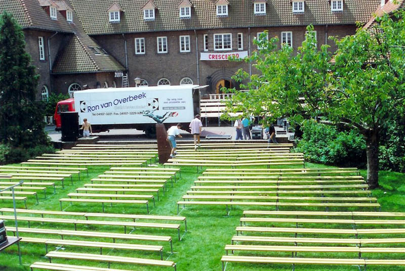 Maken van 'tribune' voor een optreden van Crescendo.