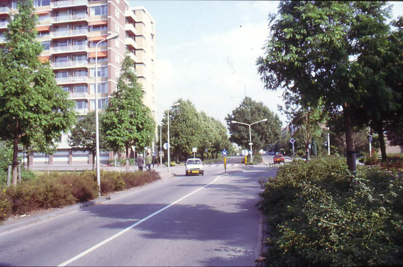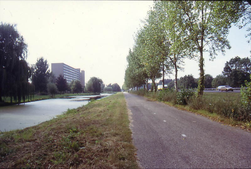 Parallelweg langs de Rijksweg bij de 10 hoog flat