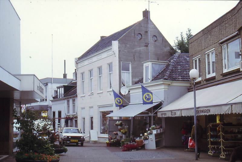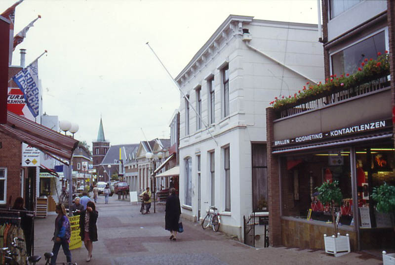 Rechts Van Mourik schoenen. Daarnaast het pand meubelzaal Lockhorst in de Kerkbuurt, voorheen Jo van der Lingen. Links kledingzaak Van Beuzekom.