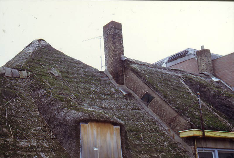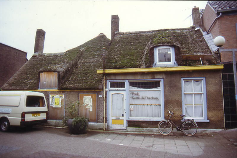 Rieten daken van sigarenwinkel van Van Rijsbergen, later koffiehuis Paul Koot.