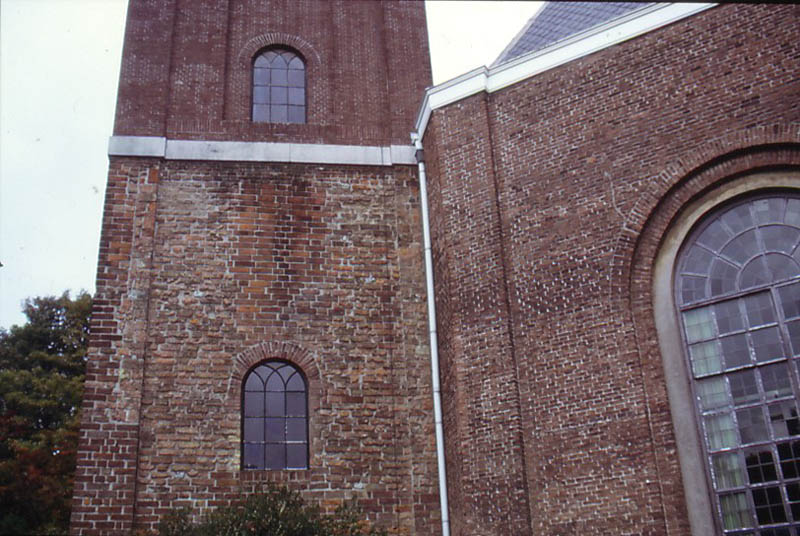 Muur van de Sliedrechtse kerktoren en deel van de muur van de kerk.