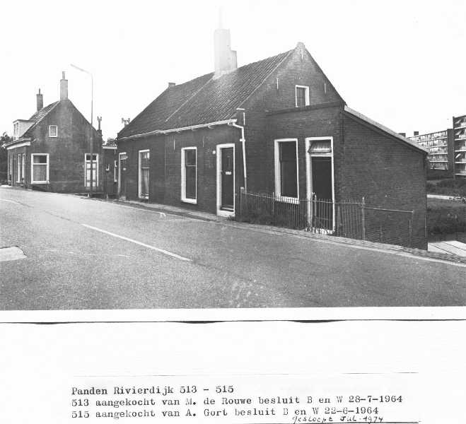 Rivierdijk 513-515 bij slager Van der Hee aan de Wiel. Huis daarnaast bewoond door familie Gort.