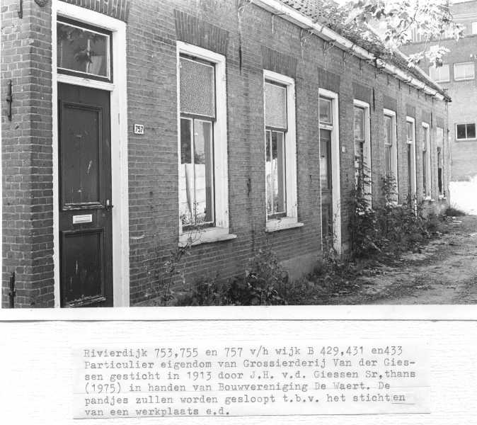 Rivierdijk 753-755-757, voorheen Wijk B 429-431-433 naast pastorie Chr.Ger.Kerk, nabij kruising dijk met de Oosterbrugstraat