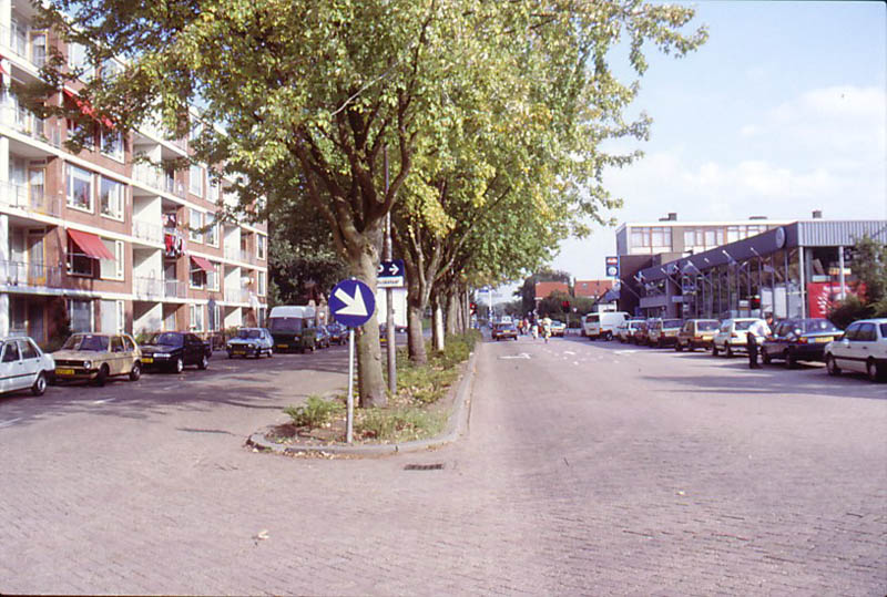 Kerkbuurt t.o. het Merwedeplein met o.a. boekwinkel De Waard