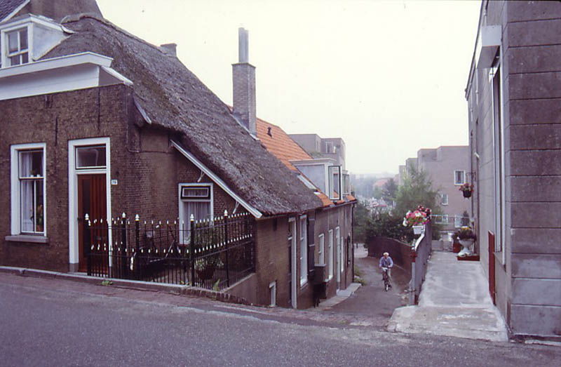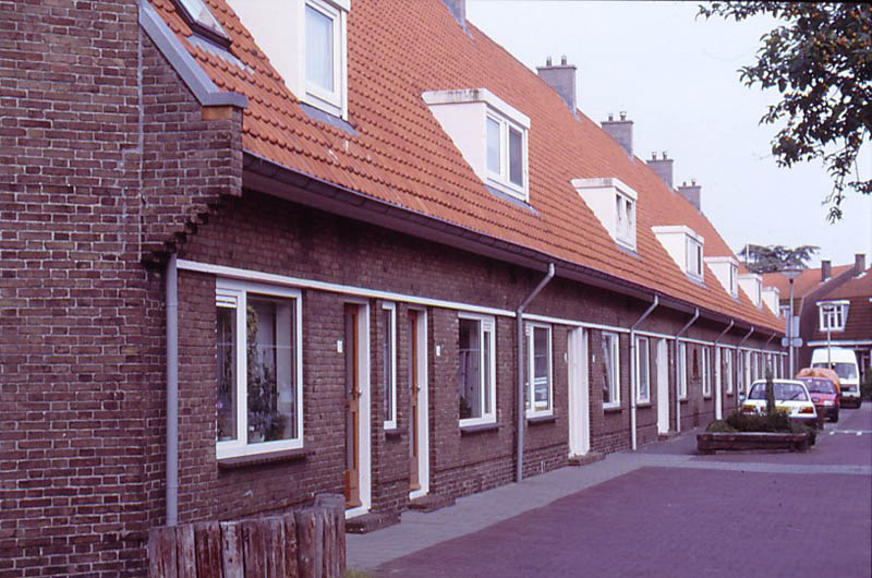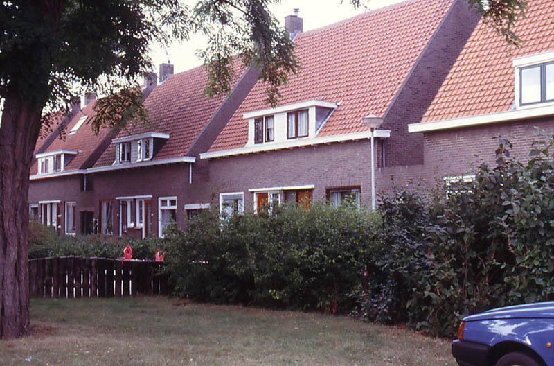 Op voorgrond de woning van Gerrit Maat, daarachter de voormalige pastorie in wijk B buitendijks.