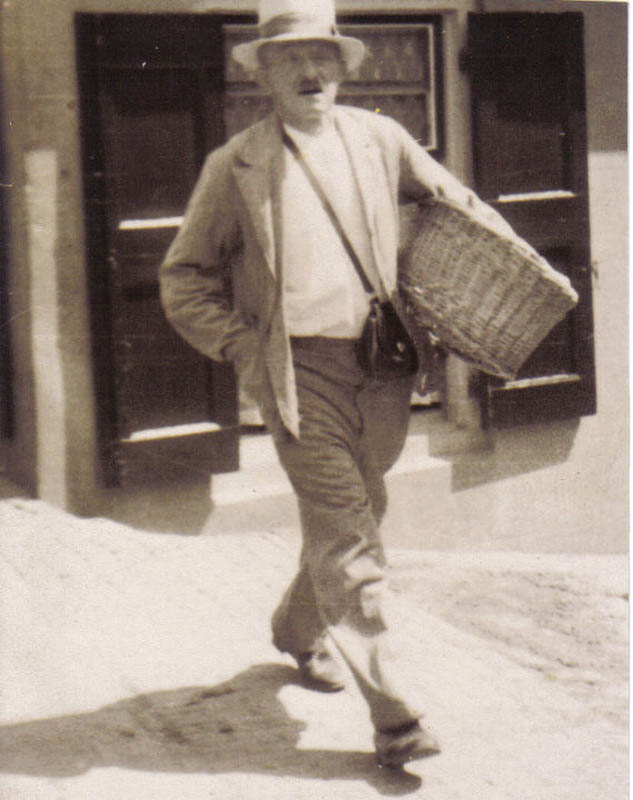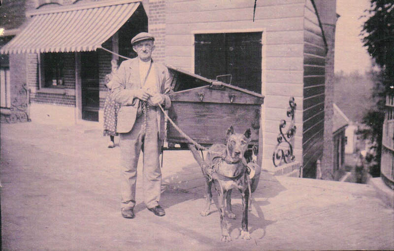 Bakker Jan de Jong, woonde boven aan de Smidsstoep, met zijn broodmand.