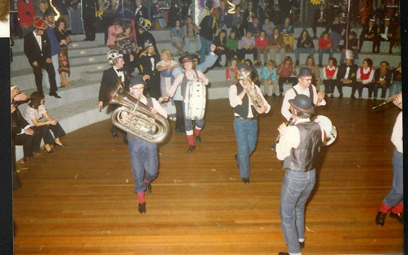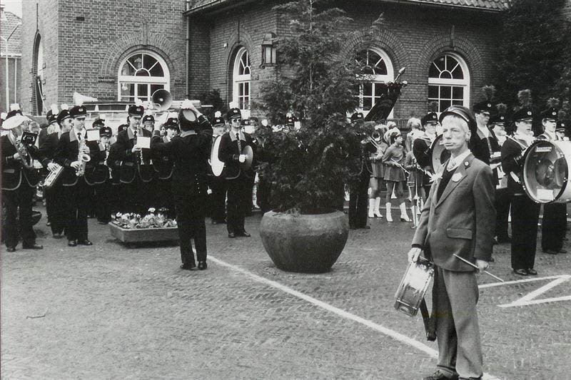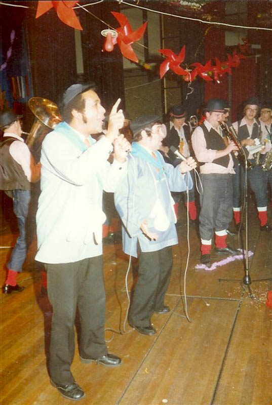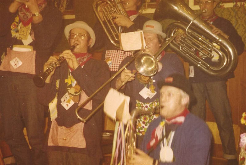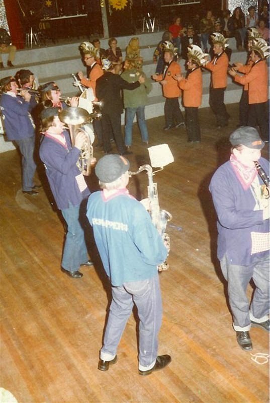 Carnavalsband samengesteld uit leden van Crescendo treden op de de Bonkelaar