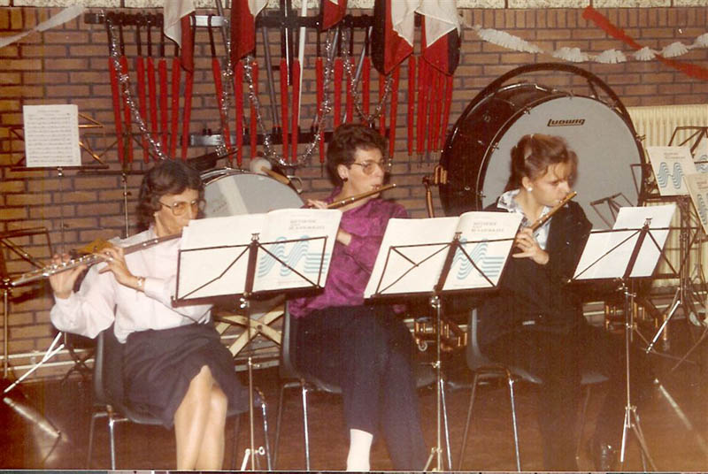 Oefenen in C12 bij Crescendo. Crescendo dames fluitisten. V.l.n.r. Corrie Groenendijk, Clari Kros, Sandra Groenendijk.