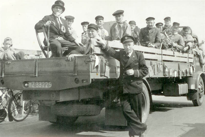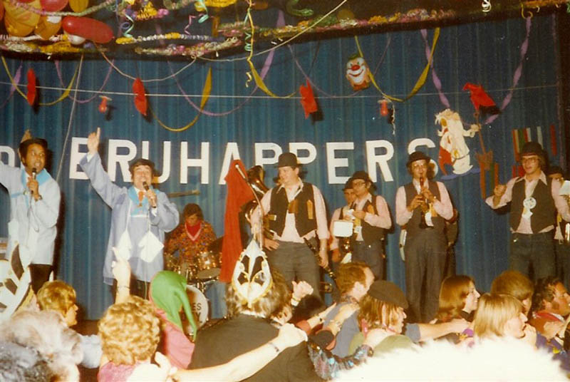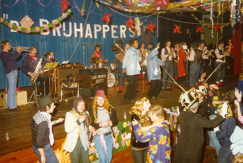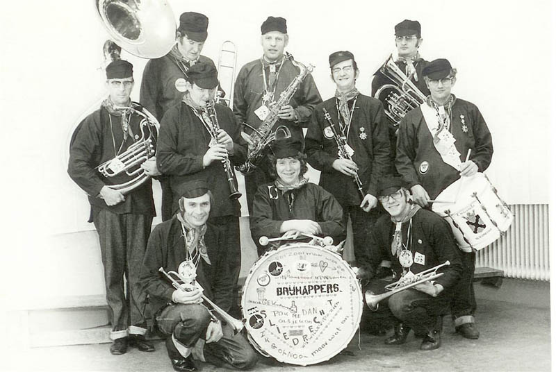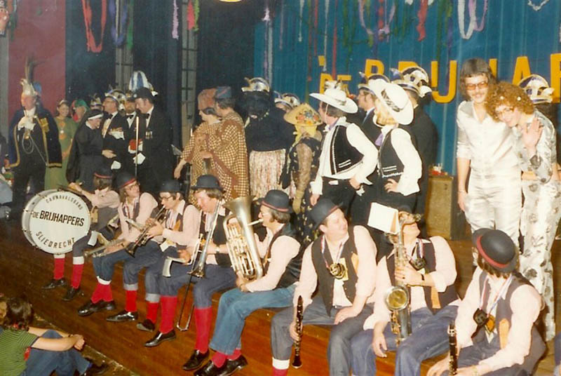 Carnavalskapel de Brijhappers. Boven: Henk Korevaar, Tinus Korevaar, Dick Korevaar, Riens Pijl, Cees Kros. Onder: Reijer Kros,Wim Koppelaar, Ad Koppelaar,Cor Korevaar en Jan Korevaar.