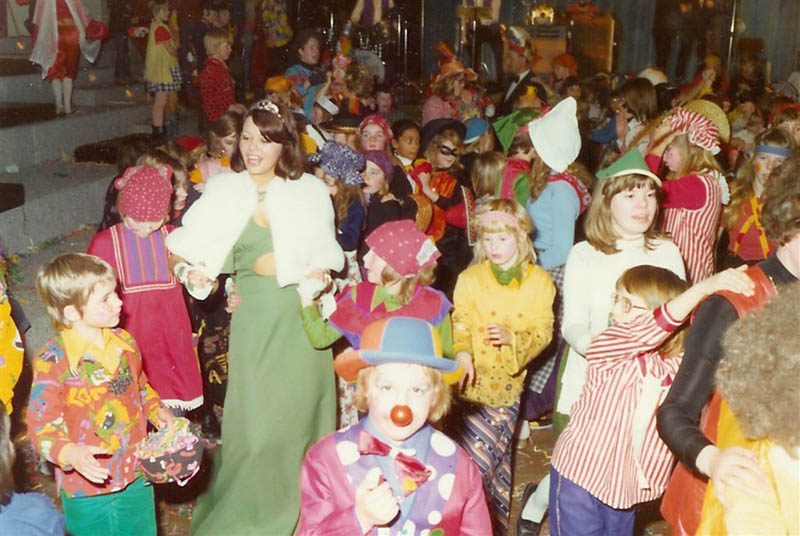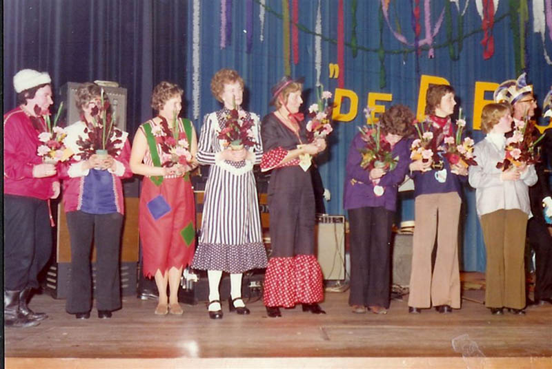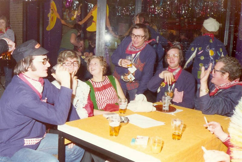 Carnaval in de Bonkelaar ca.1974. V.l.n.r Jan Korevaar, Jannie Korevaar, Jopie Koppelaar, Wim Koppelaar, Henk Korevaar, Daan Visser.