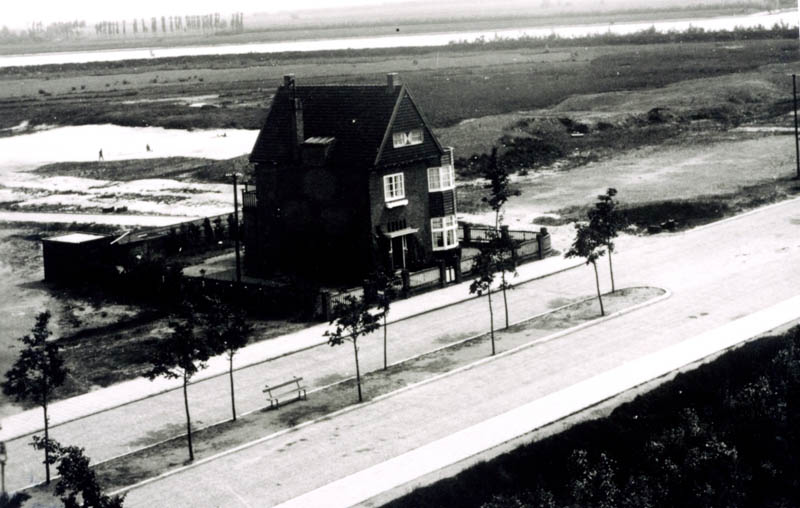 Eerste woning in de Merwestraat met nog een onbebouwde Oude Uitbreiding.