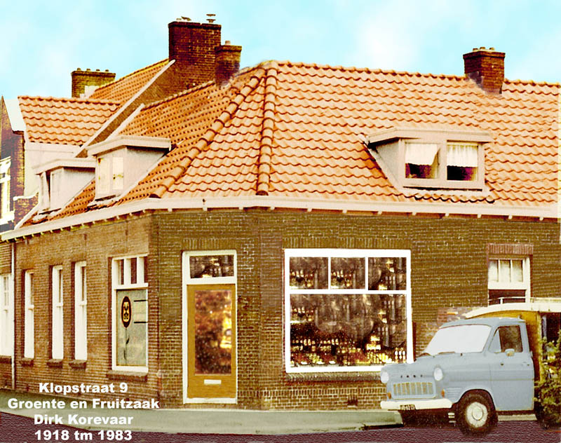 Groente- en fruitzaak Korevaar op de hoek Klopstraat / Emmastraat