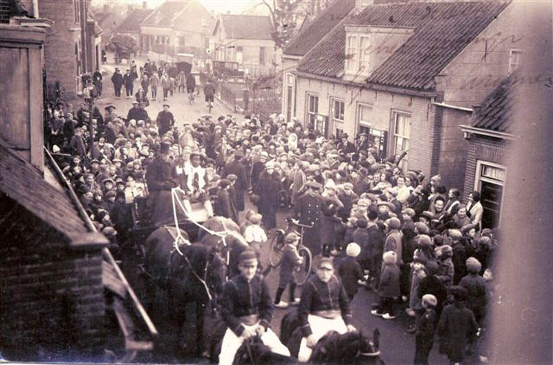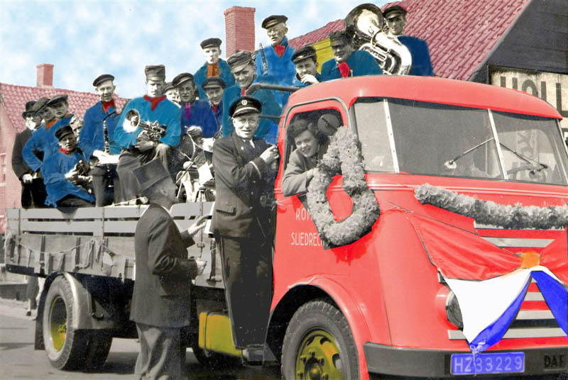 Boerenkapel Crescendo tijdens optocht vijf jaar na de bevrijding in 19450