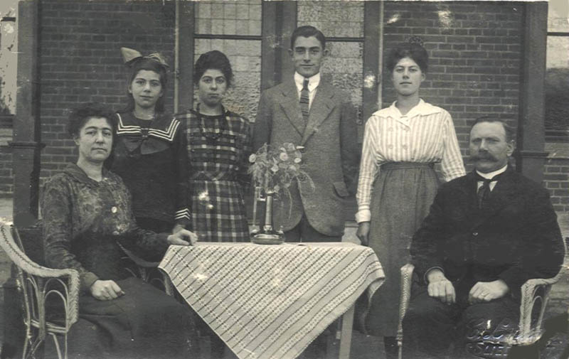 De heer A. de Gruijter schrijft: Vlnr. Teuntje Cornelia van der Vlies (mijn oma), Cornelia Lukina van der Vlies (mijn moeder), Katharina van der Vlies (tante), Johan van der Vlies (oom), Poulien van der Vlies (tante), Teunis van der Vlies (mijn opa).