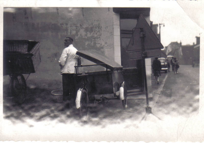 Bakker Teunis de Jong met de bakfiets bij de Smidsstoep.