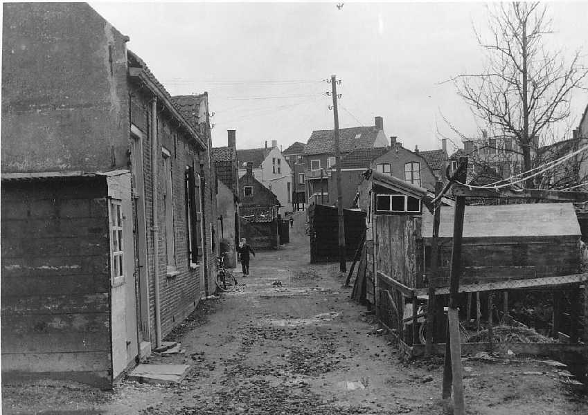 Wijk B 825 Omgeving Gereformeerde school. Het huis op de voorgrond links is Smidstoep nummer 7.