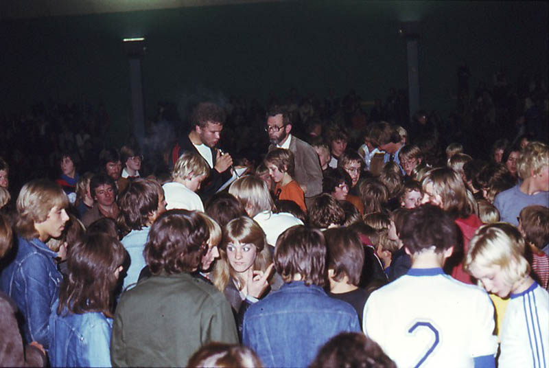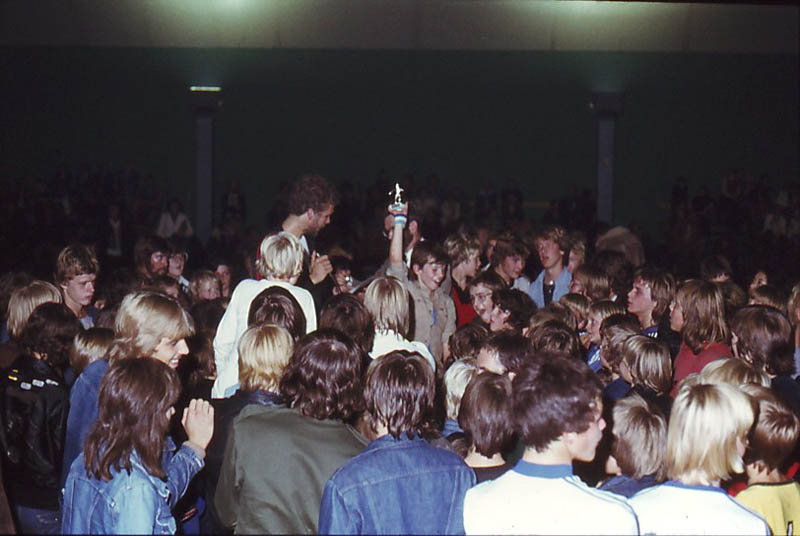 Showoptreden van Wilhelmus II ("Wee-Twee") in de luchthal aan de Thorbeckelaan, rond 1978