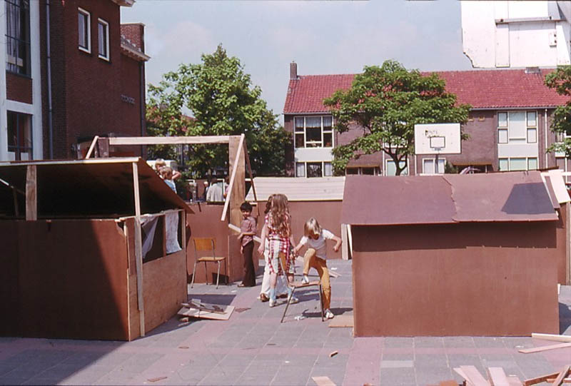 Huttenbouw op het schoolplein van de Jan Ligthartschool.