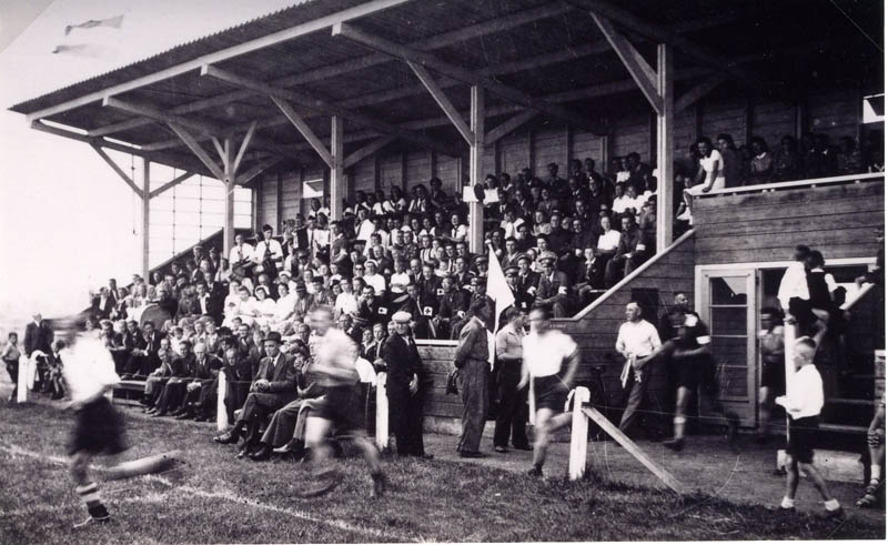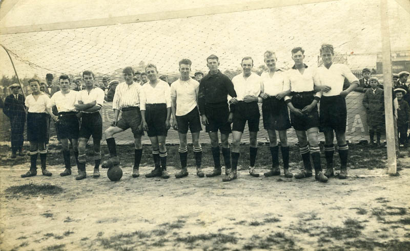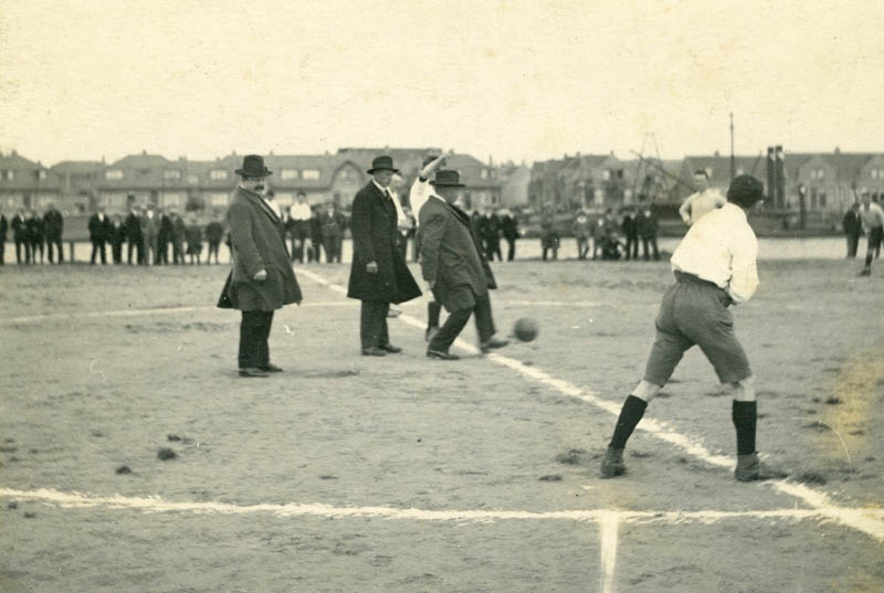 Opkomst van Sliedrechtss voetbalelftal op het terrein aan de Paralleweg