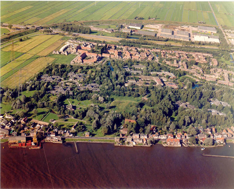 Baanhoe, de Merwebolder en een deel van de Westwijk gezien vanuit de lucht.