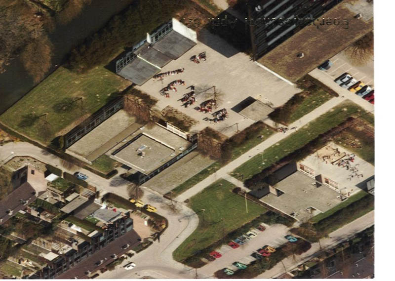 Luchtfoto 1982 met de Boerhaaveschool. Foto moet 180 graden gedraaid worden!