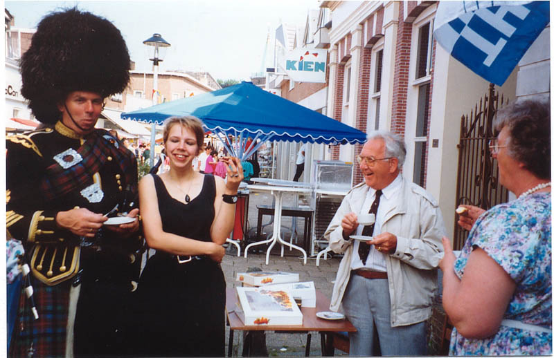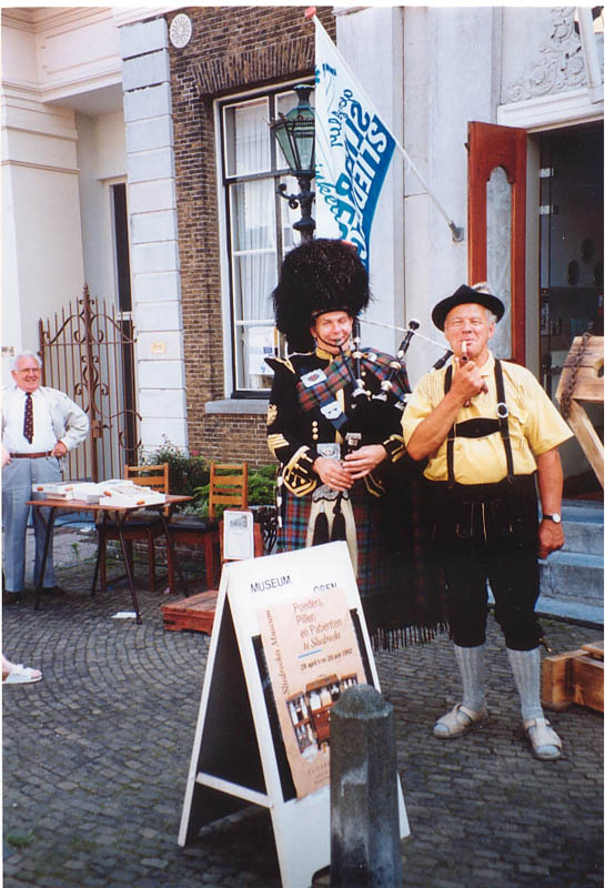Piet ter Laak en doedelzakspeler voor het Sliedrechts Museum